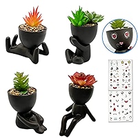 Amazon Com Uxsein Fake Succulents Plants Artificial Decor 4 Pcs Artificial Succulents In Pots Cute Human Shaped Mini Fake Plants For Desk Office Bathroom Home Decor Black Home Kitchen