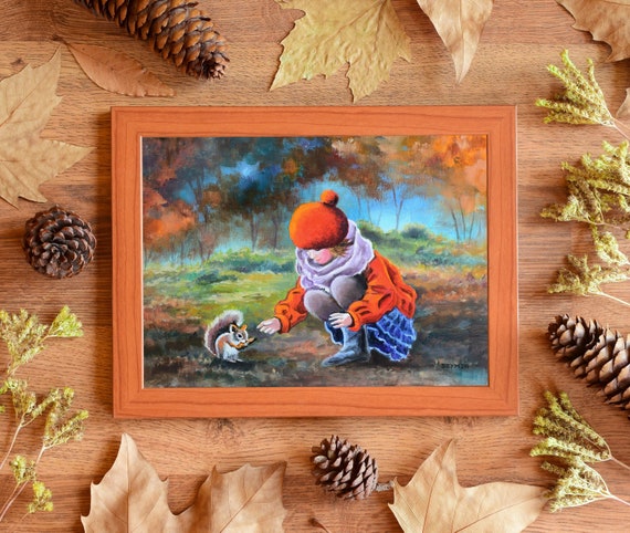 Autumn Oil Painting With Children Cottagecore Nursery Art Etsy Uk